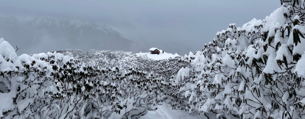 The path consists of pine forests that are dense, clearings, and ultimately the summit ridge providing a 360° view of Himalayan ranges.