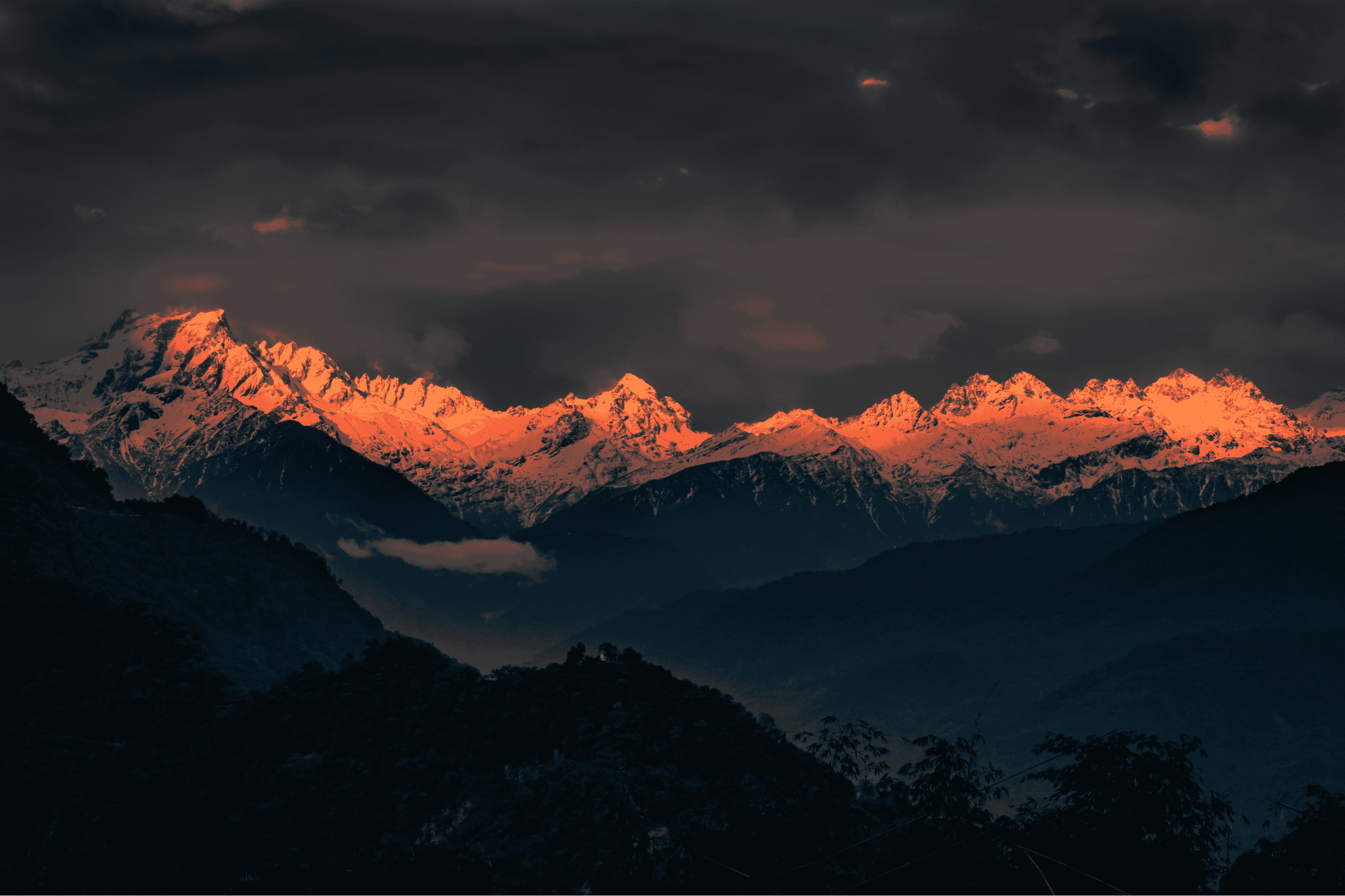 We wake to our first morning in the mountains, enjoying breakfast with views of the surrounding peaks before driving to Melliaching. The two-hour journey follows rough mountain roads that offer glimpses of traditional Sikkimese village life, with colorful houses adorned with Buddhist symbols and terraced fields stepping down steep hillsides. At Melliaching, we meet our support team and begin our trek proper, climbing steadily through ancient forests of rhododendron and magnolia. The afternoon's climb to Bhanjang takes us through increasingly pristine forest, with the air growing cooler and the views expanding with every step. Upon reaching Bhanjang in the late afternoon, we set up our camp in a beautiful clearing surrounded by forest, with the sounds of the mountains providing a natural symphony as we enjoy our first camp dinner under the stars.