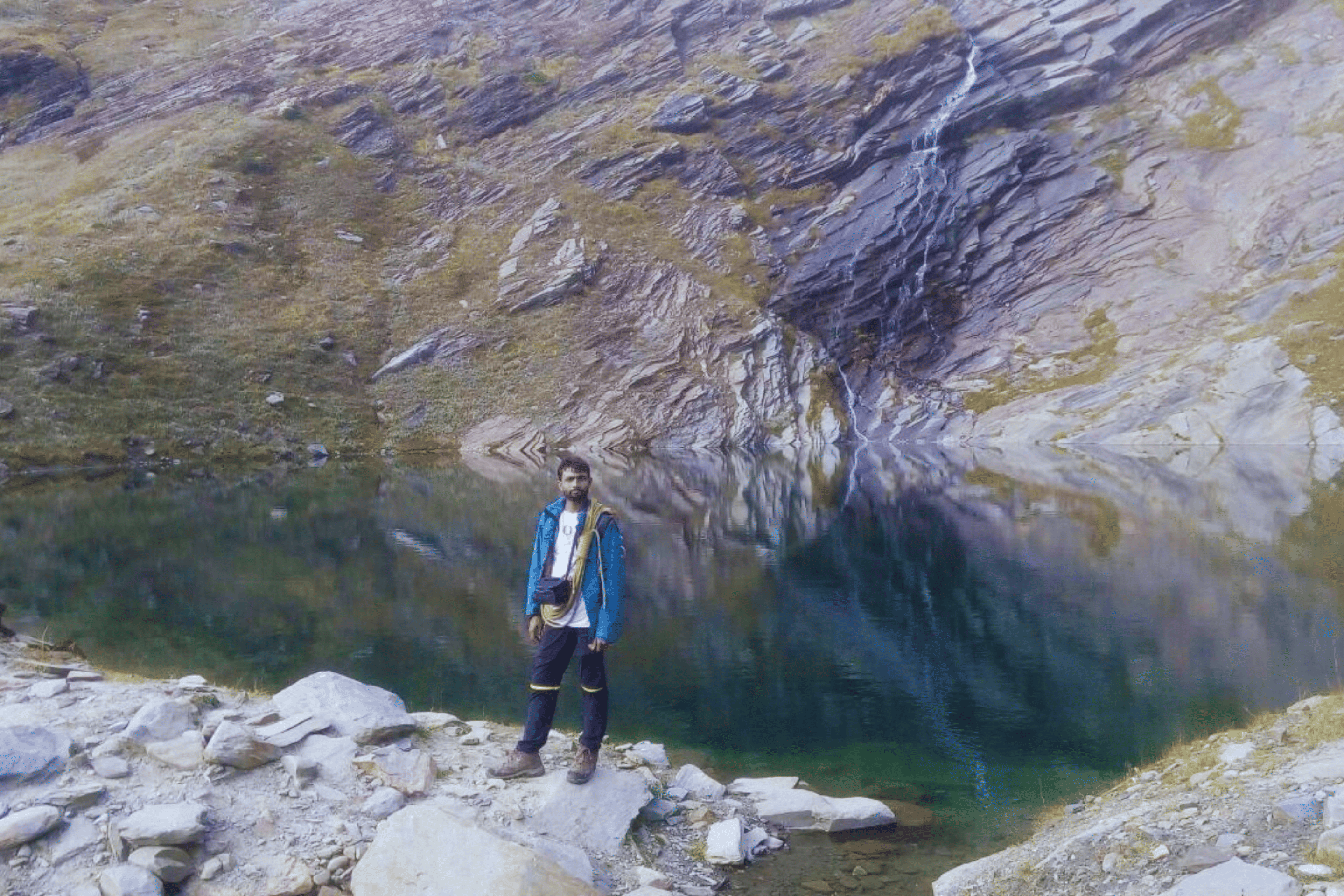 After approximately 2-3 hours of trekking, you'll cross a ridge and the emerald waters of Beas Kund come into view. The lake sits in a stunning natural amphitheater, cradled by towering peaks on three sides. On clear days, the water reflects the mountains so perfectly that it creates a mirror-like effect that photographers dream of. This is the source of the mighty Beas River - what begins as this serene glacial lake will eventually become the raging river that flows through Manali and beyond.